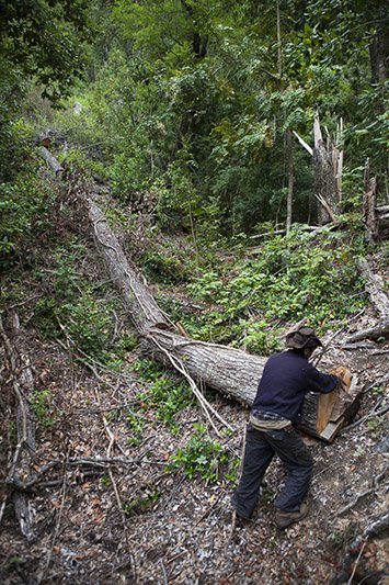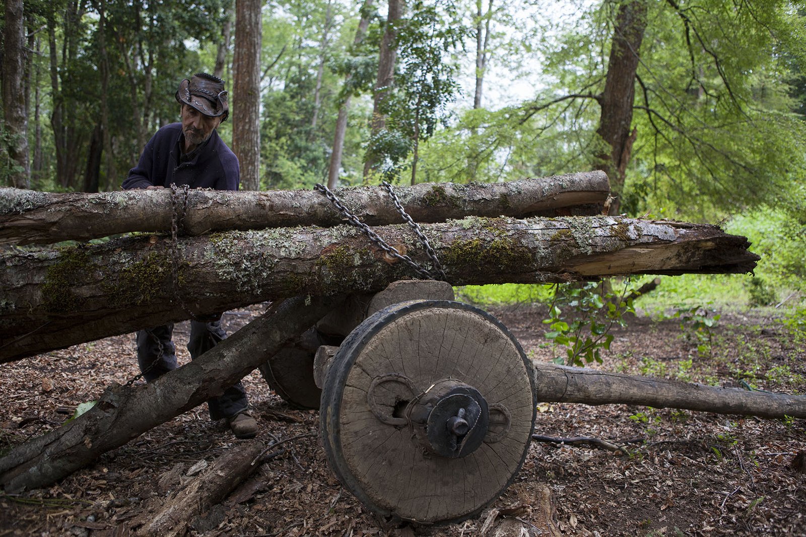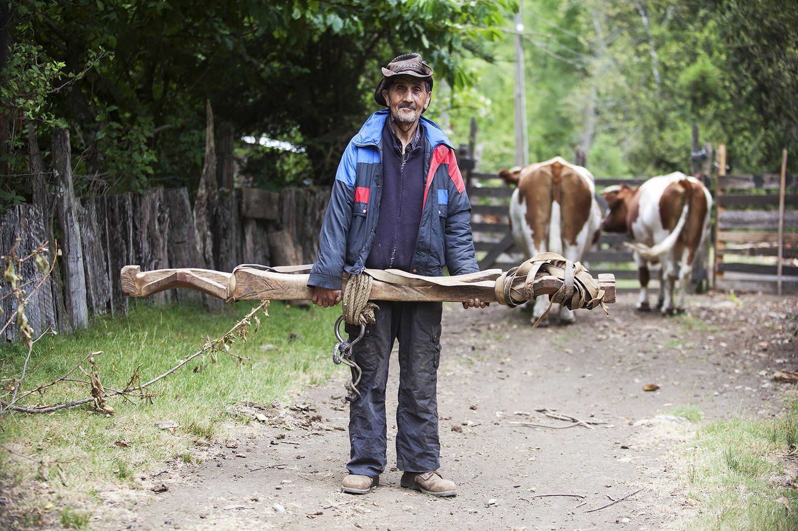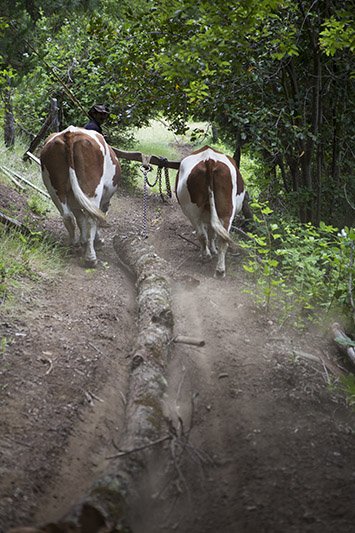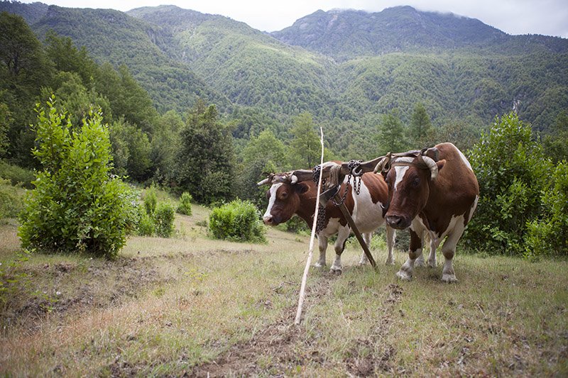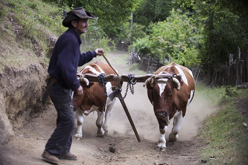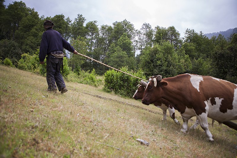 Es una mañana fresca en este septiembre del 2015 . Quede en visitar al vecino que trabaja del otro lado del Río Trankura. Enedino tiene 74 años y un oficio que heredó de su padre, «maderero con bueyes», lleva 5 décadas cumpliendo con esta vocación que ama. Ahora, tiene unos nuevos bueyes de 6 años y 800 kg, ellos son «suspiro por verte». Con ellos, acarrea troncos desde lo alto de la montaña dentro de los inmensos bosques del sur de Chile, para luego ser llevados a los aserraderos o ser usados para leña.